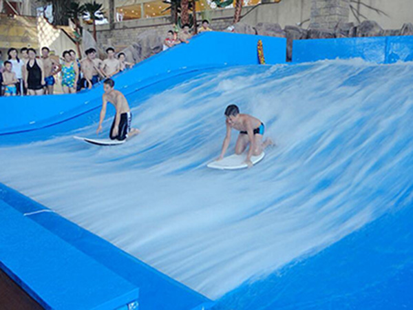 雙人滑板沖浪設(shè)備原理:水流經(jīng)過特制的加壓系統(tǒng)及噴頭在滑板表面形成一層薄薄均勻的水流,從下至上逆向快速移動(dòng),游客從上往下滑,就像沖向大浪的浪尖,讓游客感覺源源不斷的沖浪快感。